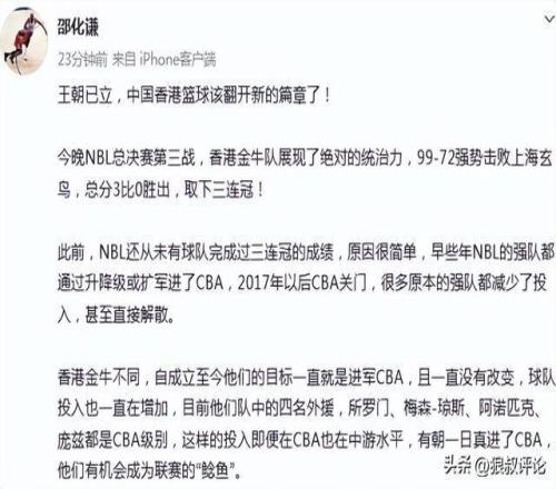 香港金牛創NBL三連冠引熱議!媒體人:自成立至今的目標一直是CBA