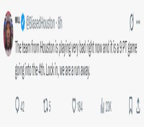 申京19中6、阿門18中7、小賈14中5、謝潑德20中6、霍勒迪4中0、泰特5中1,火箭全隊(duì)93中35,三分命中率37.6%,三分球33中11,三分命中率33.3%。火箭的年輕核心們太拉胯了。休斯頓的媒體與記者們紛紛朝著火箭開炮。