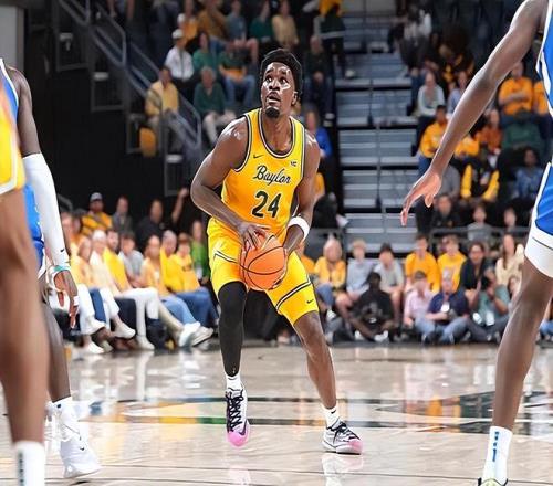 擁有美國(guó)和貝寧雙重國(guó)籍的耶蘇福出生于2006年5月,身高196cm,體重95kg,是2025屆排名全美前15位的五星高中生。在本賽季的NCAA賽場(chǎng)上,耶蘇福總共出場(chǎng)34次,場(chǎng)均出場(chǎng)時(shí)間達(dá)到了32.5分鐘,場(chǎng)均數(shù)據(jù)為17.8分5.9籃板(2.4前場(chǎng)籃板)1.6助攻2搶斷0.6蓋帽,還有1.9次失誤和2.3次犯規(guī),投籃命中率46.5%(6.6/14.3),三分命中率29.3%(1.6/5.3),罰球命中率74.6%(2.9/3.9)。本賽季耶蘇福的個(gè)人表現(xiàn)還是頗具亮點(diǎn)的,在攻防兩端都展現(xiàn)出了不俗的個(gè)人能力。只是貝勒大學(xué)的戰(zhàn)績(jī)確實(shí)是差了一些,這也導(dǎo)致了他的數(shù)據(jù)相對(duì)來說有些缺乏說服力。