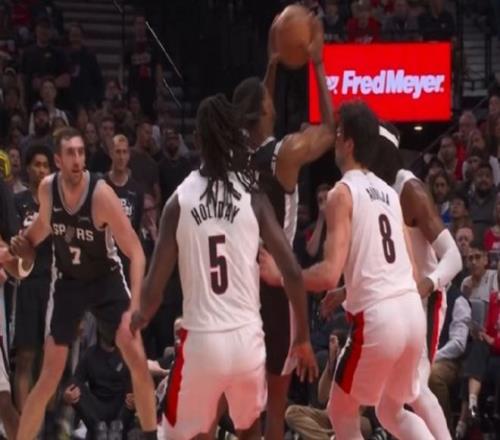 比賽還剩4分鐘左右,馬刺領先開拓者10分以上,勝負其實已經基本分出來了。