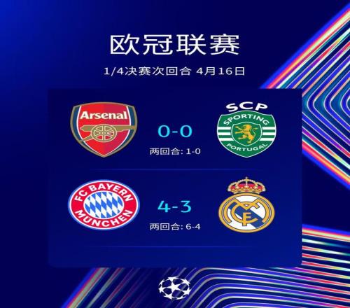 至此歐冠四強全部產生,分別是巴黎圣日耳曼、拜仁慕尼黑、馬德里競技、阿森納。