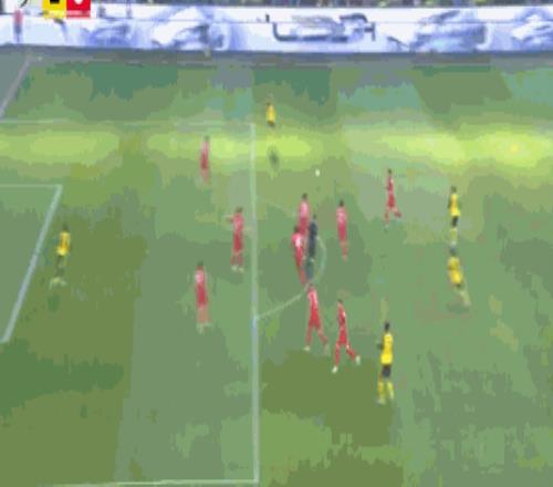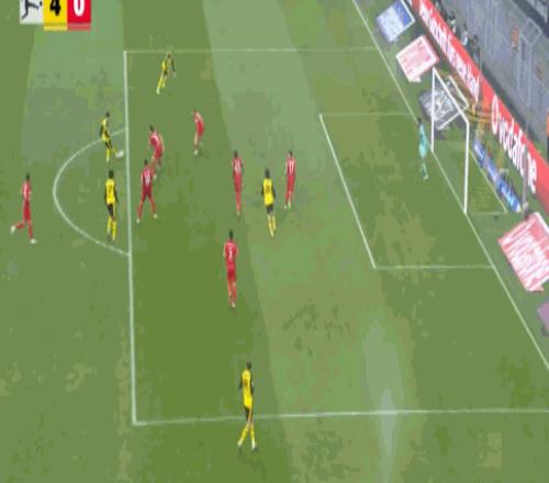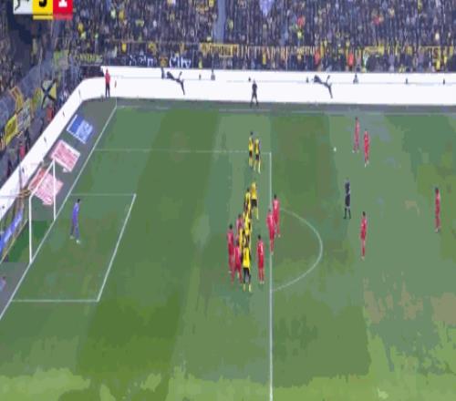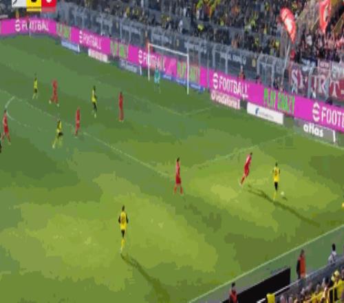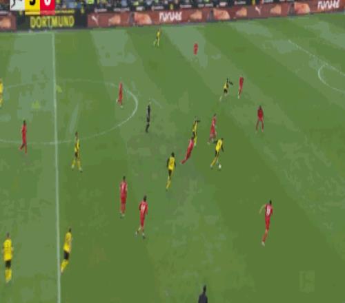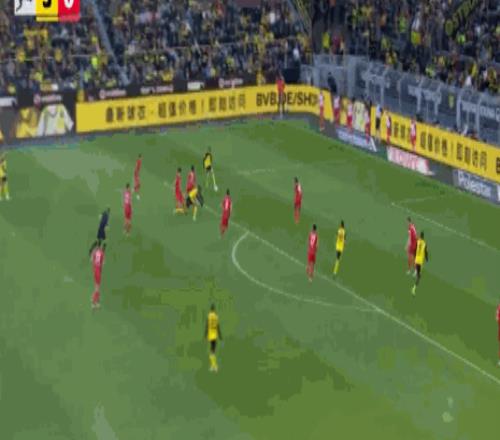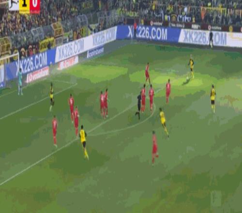 第8分鐘,小紅書丨本塞拜尼后場長傳,拜爾破門,多特1-0