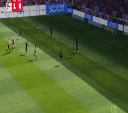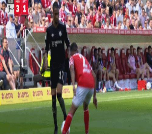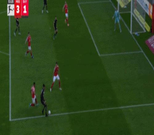 5分鐘之后,奧利塞右路拿球內切,突然起腳兜射遠角,將比分追至2-3,士氣大振的拜仁,第80分鐘抹平了分差,穆夏拉前場直塞策動進攻,奧利塞下底傳中,美因茨后防解圍不遠,穆夏拉門前笑納大禮,將比分追至3平,僅僅過了3分鐘,凱恩破門建功,幫助拜仁4-3上演驚天大逆轉。