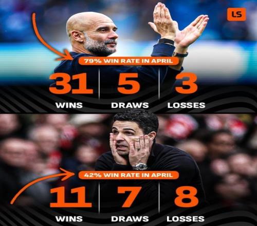 瓜迪奧拉和阿爾特塔四月份戰績:
