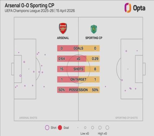 Opta統計,本場比賽阿森納的預期進球只有0.64,葡萄牙體育則只有0.29,兩支球隊的預期進球數之和創造了本賽季歐冠單場比賽最低紀錄。
