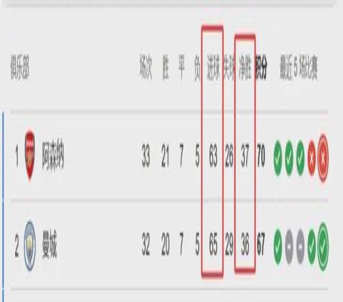 此役過后,積分榜上阿森納積70分,曼城少賽一場積67分。如果曼城在本周四的補賽中擊敗伯恩利,就將憑借凈勝球優勢反超登頂。