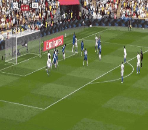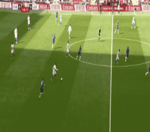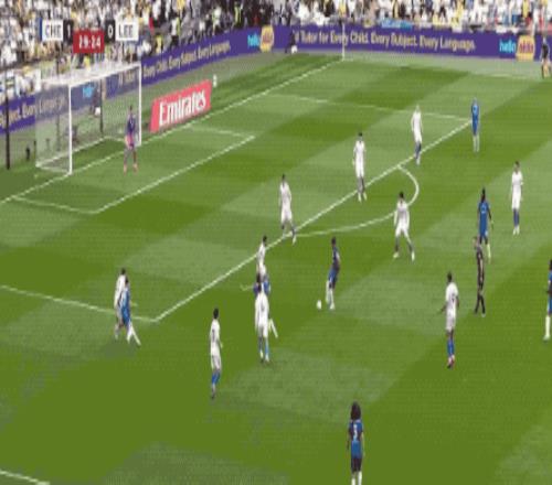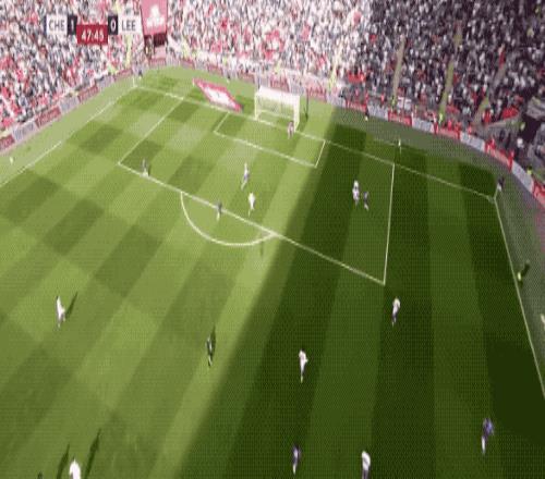 第13分鐘,利茲聯打出精妙配合,勒溫送出手術刀一般的直塞,阿隆森獲得單刀機會,桑切斯用大長腿化解險情。