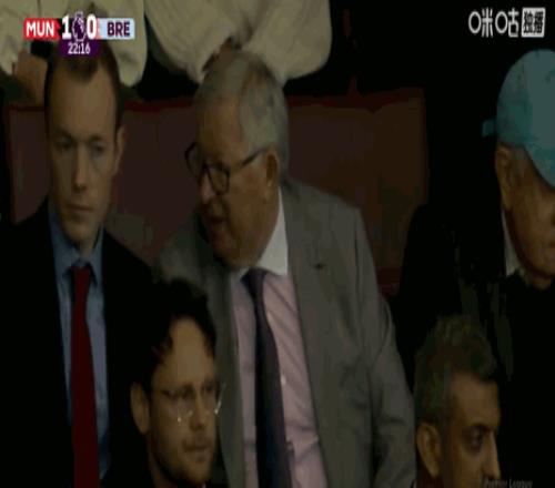 第23分鐘,鏡頭給到場邊,弗格森看臺觀戰
