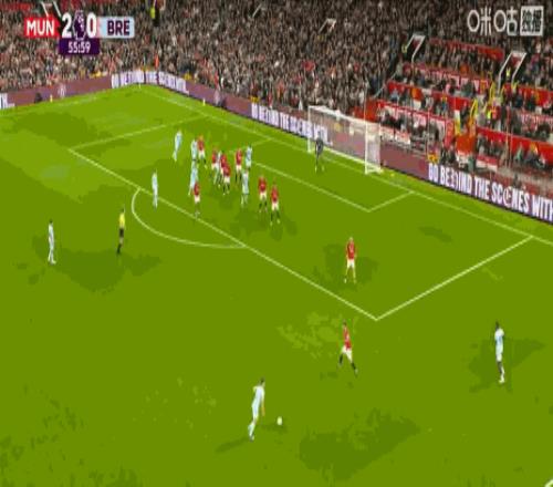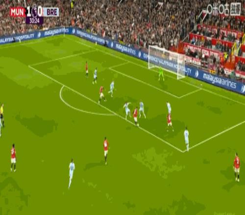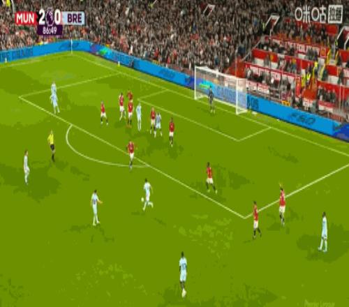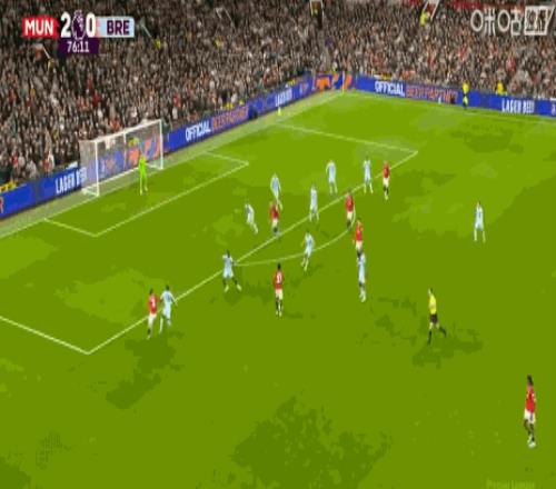 第43分鐘,B費助攻,謝什科破門,曼聯2-0