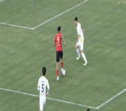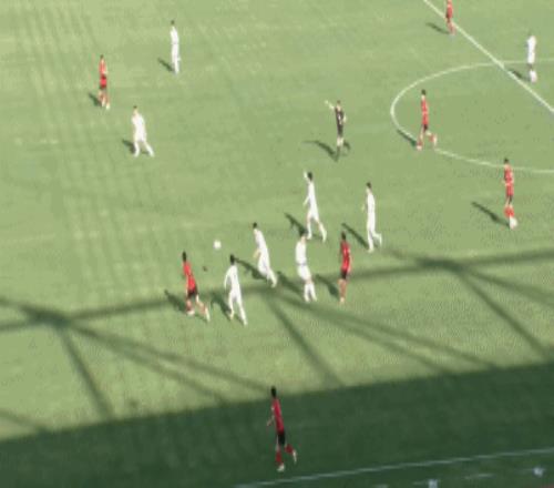 第28分鐘,浪費(fèi)機(jī)會,樊超單刀機(jī)會選擇橫敲,但力量太小被解圍