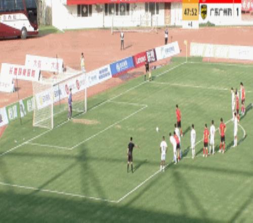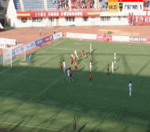 第65分鐘,王昊斌開出任意球,圖多列頭球破門,廣州豹2-1