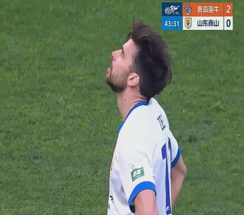 第43分鐘,澤卡右路傳中到后面,劉洋傳球擊中橫梁彈回場內,澤卡的補射再次擊中立柱,錯失良機。半場補時階段,謝文能的爆射迫使牟鵬飛做出關鍵撲救。半場結束,泰山隊0-2落后。