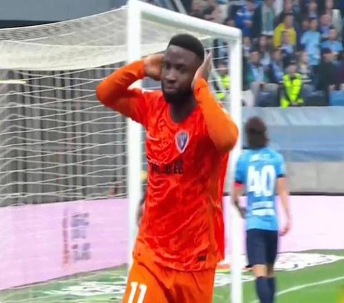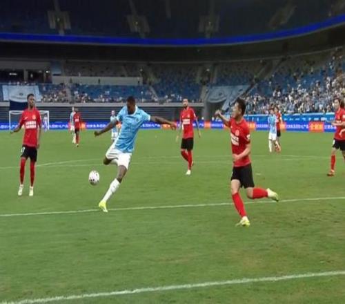 第26分鐘,李源一越位位置接球調整打門偏出。第36分鐘,海牛前場搶斷后,埃朱馬利用身體優勢卡住防守,隨后冷靜推射破門,海牛2-0領先!