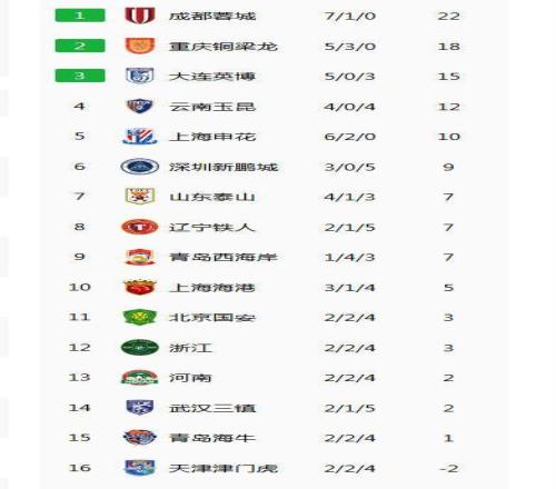 最終,重慶銅梁龍主場1-1戰平青島西海岸,積18分,繼續排名第二;西海岸積7分,排名第9。
