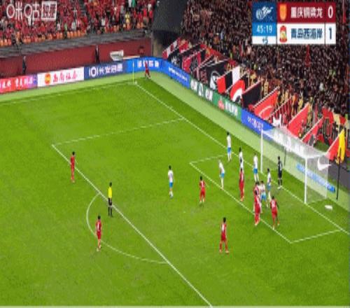 第45+1分鐘,銅梁龍角球進攻,李昊失誤,杜月徵后點頭球破門,銅梁龍將比分扳為1-1!